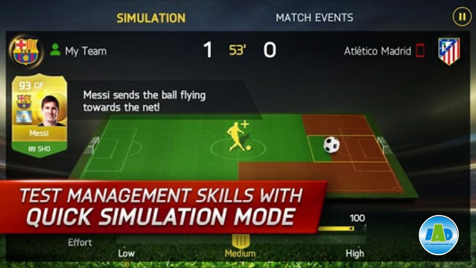 own team. Including Eden Hazard and Lionel Messi.PLAY IN QUICK SIMULATION MODEPut your management skills to the test with new Quick Simulations. Set up your squad, start the match, and watch it unfold. Make smart subs, tactical tweaks, and gauge team effort along the way. Your match results depend entirely on your ability to manage player skills and chemistry – taking authenticity to the next level.OR TAKE IT TO THE PITCH! If you’re new to FIFA on mobile, try out our “Casual Controls”, with elegantly simple buttons like “shoot”, “pass”, or “sprint”.