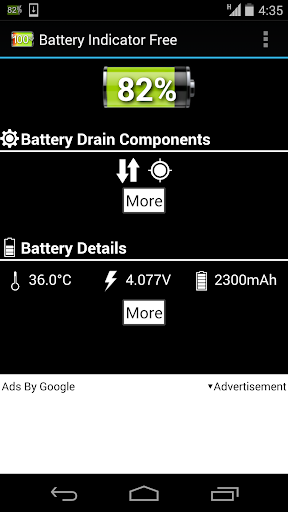 Наряду с уровнем заряда аккумулятора он также показывает температуру вашего телефона. Вы можете изменить цвет дисков, но вы не получите намного больше. Приложение также показывает подробную информацию о вашей батарее.