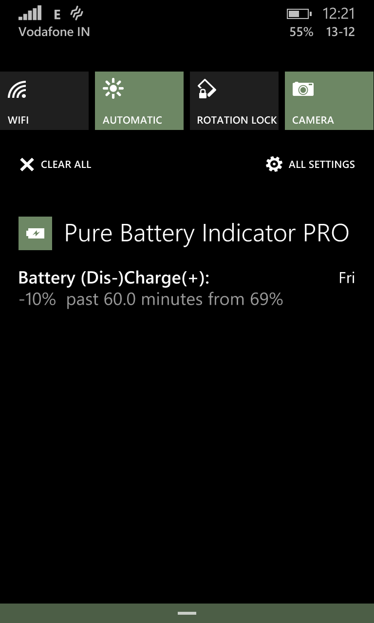Вы получаете два типа индикаторов батареи в панели энергии. Одна цветная линия над статусом и полоса полной ширины, покрывающая статус, как показано выше. Обратите внимание, что индикатор стиля градиента, показанный выше, доступен только в PRO версии. Единый цветовой стиль доступен бесплатно.
