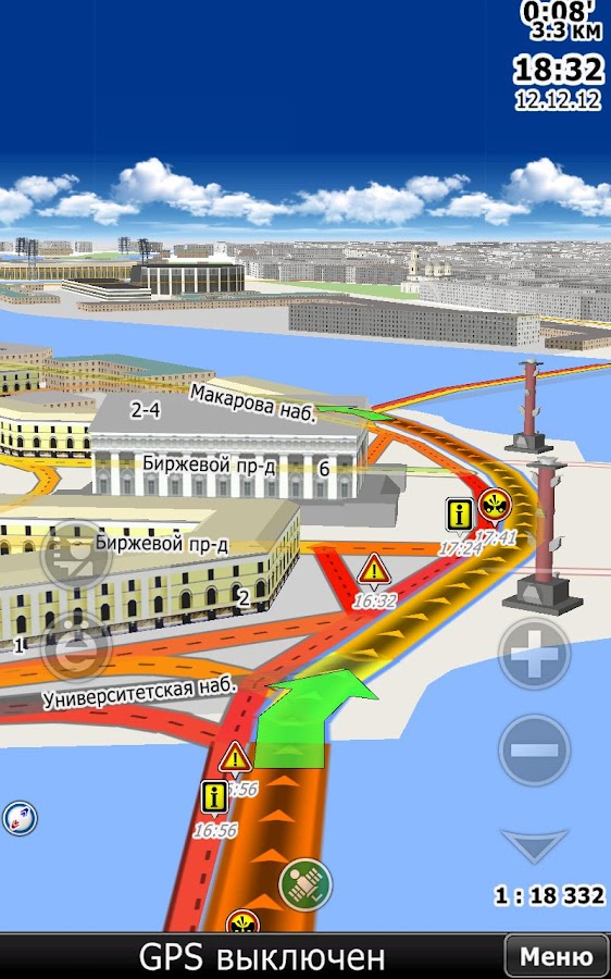 ☆ Ежедневные обновления карт Для использования актуальных данных нет необходимости ждать переиздания карт. Изменения дорожной обстановки на картах (закрытые дороги, «кирпичи», одностороннее движение, запреты поворотов и многое другое) рассылаются на карты ежедневно и автоматически учитываются при построении маршрута.