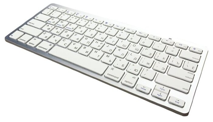 Клавиатура включает в себя переключатель ВКЛ / ВЫКЛ для экономии заряда батареи, светодиодные индикаторы блокировки Caps и уровень заряда батареи, а также 21 специальную комбинацию клавиш Apple.