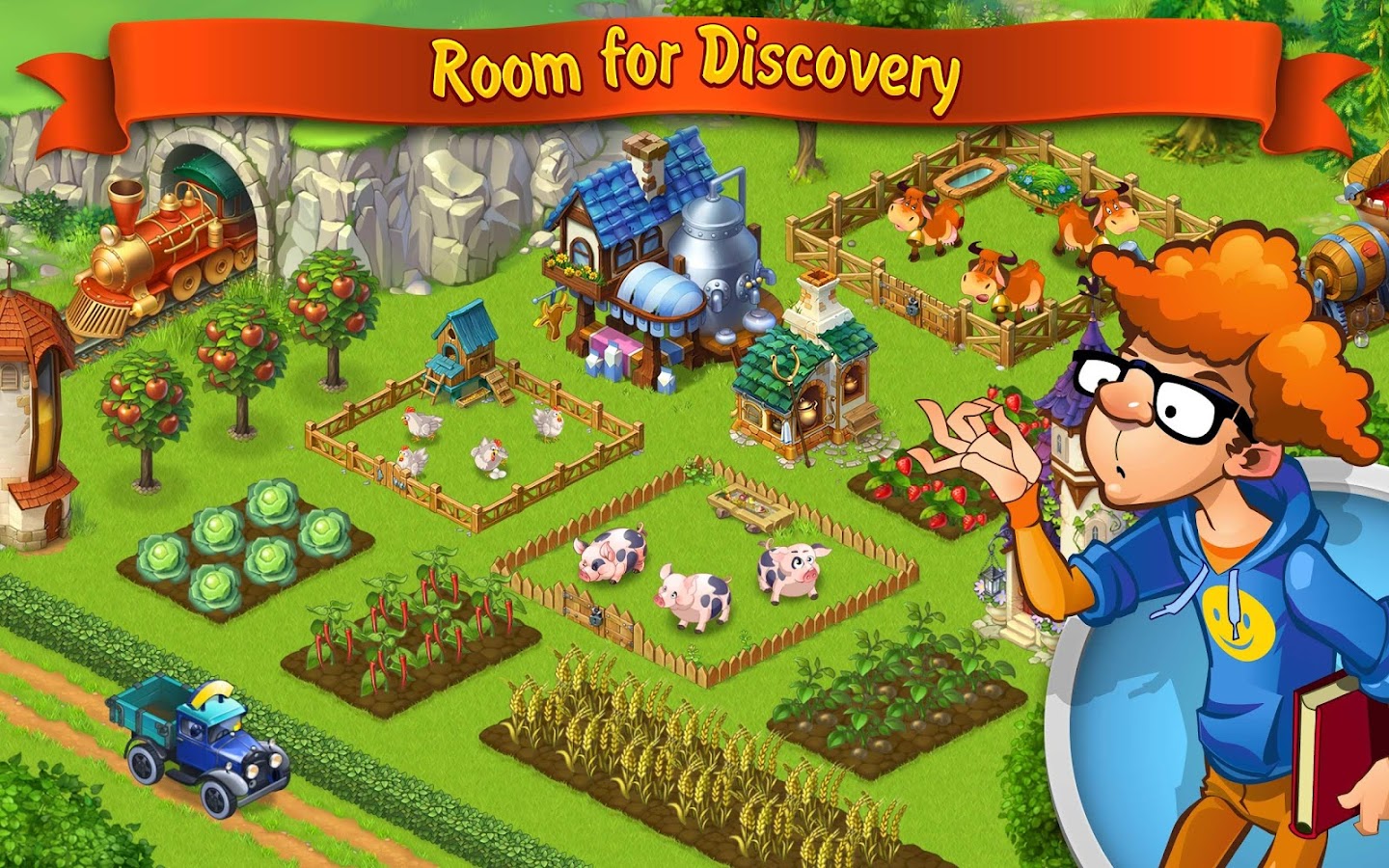 Farm Strory — здесь вы сможете создавать очень красивые поля, разводить животных, выращивать полезные фрукты и овощи. Для посадки уже сейчас доступно более 150 различных растений и цветов.