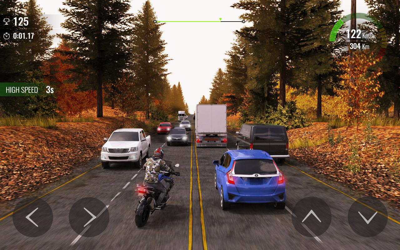 Да, вы правильно подумали – за создание этой игры ответственны те же люди, что подарили миру Traffic Racer. Теперь нам предстоит обгонять пробку, сидя за рулем двухколесного железного коня. При этом наблюдать за происходящим придется от первого лица, за счет чего динамика игрового процесса заметно возрастает.