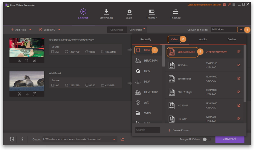 - Преобразование видео в более чем 1000 форматов, таких как AVI, MKV, MOV, MP4 и т. Д.