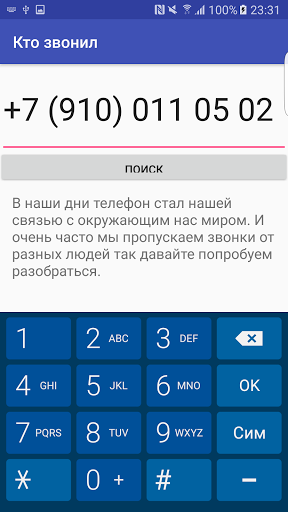 Приложение можно использовать для составления списка номеров для спама и мошеннических звонков. Это приложение использует функцию поиска владельца номера