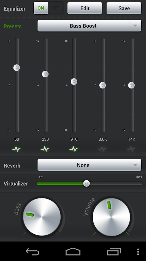 ΠΡ ΠΌΠΎΠΆΠ΅ΡΠ΅ ΠΈΡΠΏΠΎΠ»ΡΠ·ΠΎΠ²Π°ΡΡ Equalizer + Π² ΠΊΠ°ΡΠ΅ΡΡΠ²Π΅ ΠΌΡΠ·ΡΠΊΠ°Π»ΡΠ½ΠΎΠ³ΠΎ ΠΏΡΠΎΠΈΠ³ΡΡΠ²Π°ΡΠ΅Π»Ρ, ΡΡΠΈΠ»ΠΈΡΠ΅Π»Ρ Π½ΠΈΠ·ΠΊΠΈΡ ΡΠ°ΡΡΠΎΡ ΠΈ ΡΠΊΠ²Π°Π»Π°ΠΉΠ·Π΅ΡΠ° ΠΌΠΎΡΠ½ΠΎΡΡΠΈ. ΠΠΎ Π²ΡΠ΅ΠΌΡ Π²ΠΎΡΠΏΡΠΎΠΈΠ·Π²Π΅Π΄Π΅Π½ΠΈΡ ΠΌΡΠ·ΡΠΊΠΈ Π²Ρ ΠΌΠΎΠΆΠ΅ΡΠ΅ Π½Π°Π±Π»ΡΠ΄Π°ΡΡ Π·Π° Π΄Π²ΠΈΠΆΠ΅Π½ΠΈΠ΅ΠΌ Π±ΠΈΡΠΎΠ² Π²ΠΌΠ΅ΡΡΠΎ ΡΠΎΠ³ΠΎ, ΡΡΠΎΠ±Ρ ΡΠΌΠΎΡΡΠ΅ΡΡ Π½Π° ΠΎΠ±Π»ΠΎΠΆΠΊΡ Π°Π»ΡΠ±ΠΎΠΌΠ°.