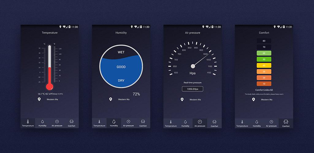 ТермометрHD — это самое последнее и распространенное приложение для измерения температуры в помещении для Android, которое позволяет вам определять температуру и влажность в зависимости от вашего непосредственного окружения.
