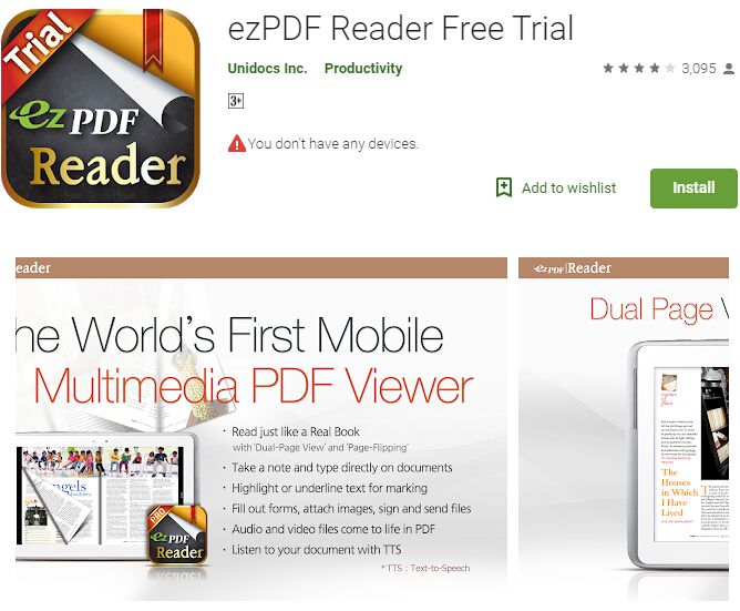 ezPDF Reader Lite для просмотра PDF — это платное приложение для чтения PDF премиум-класса для Android, но оно ничего не стоит (0,99 доллара США) по сравнению с теми функциями чтения и просмотра PDF, которые оно предлагает.