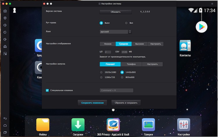 Эмулятор построен на платформе Android 4. 4.2, что обеспечивает поддержку практически всех приложений.