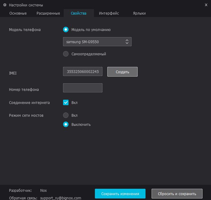 Nox App Player имеет довольно обширные настройки, начиная с расширения, количество процессоров и выделяемой памяти, заканчивая моделью и IMEI
