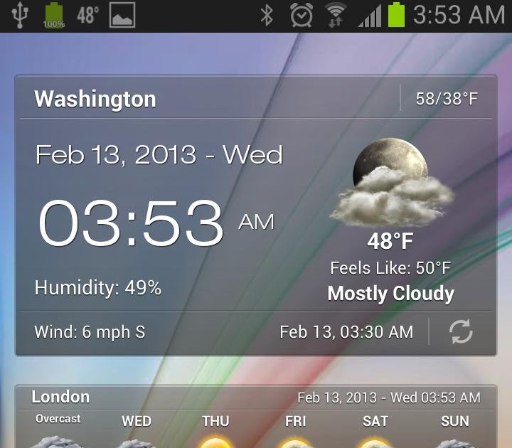 Weather Underground © Фото Weather Underground в Google PlayWeather Underground — еще один виджет часов Android, который довольно популярен, как и Today Weather. Он позволяет одновременно разместить несколько виджетов на главном экране.