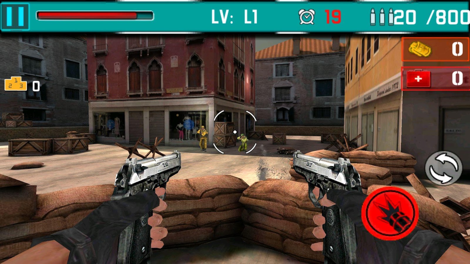 попробуйте удобное управление в этой армейской игре. Управляйте движением игрока в этой лучшей стрелялке с помощью джойстика. используйте кнопки «стоять» и «приседать», чтобы играть и получать удовольствие в этих мировых военных играх. Кроме того, индикатор вашего здоровья и оставшийся боезапас также подсвечиваются, как в новых играх. играть в беспрерывный автоматический стрелок в этой стрелялке. Если вам нравится быть лучшим стрелком, заработайте славу в игре коммандос, рекомендованной вам.