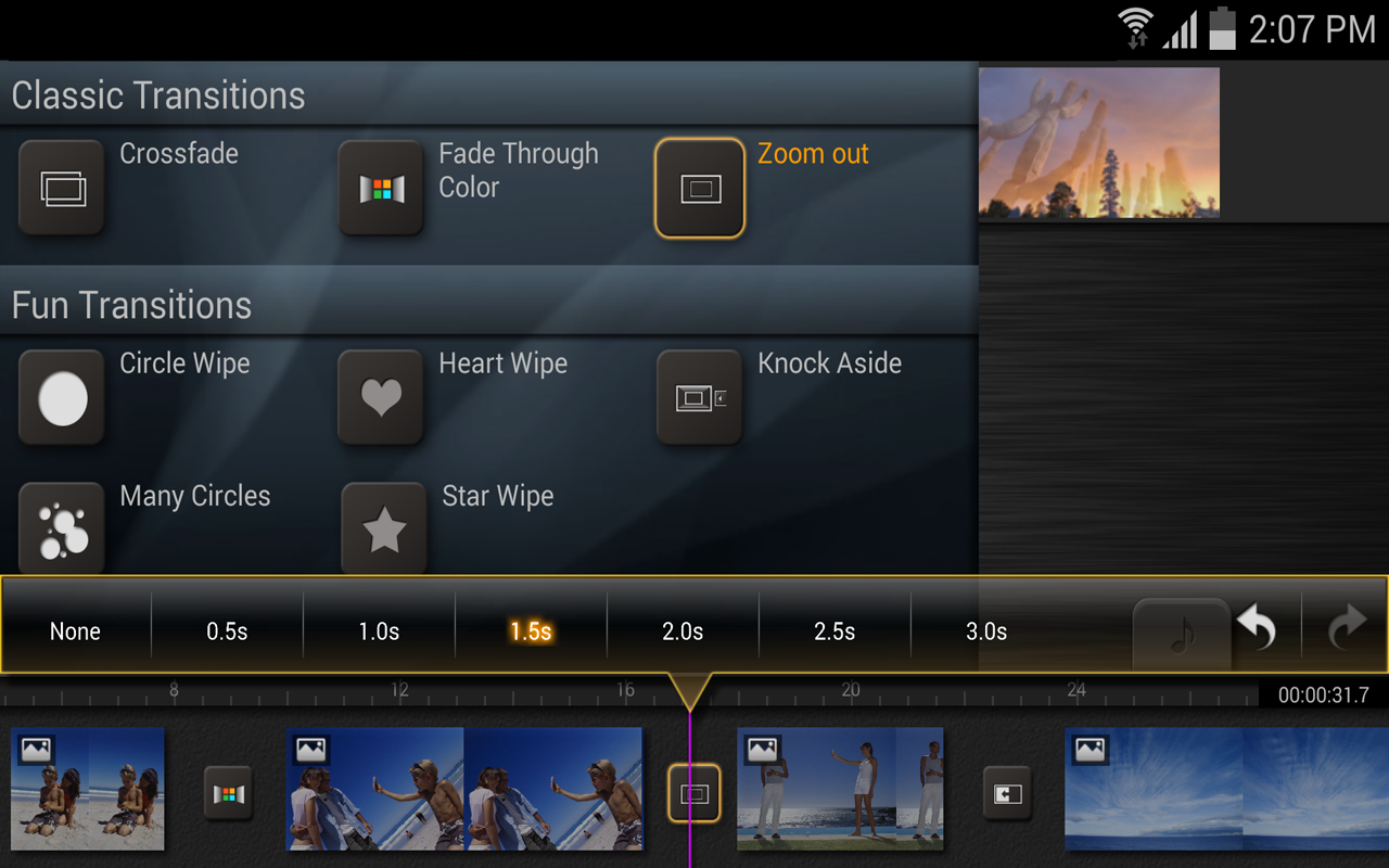 [Эффекты перехода] Более 9 встроенных режимов перехода на выбор, таких как растворение, размытие и т. Д. Отрегулируйте скорость перехода, чтобы ваше видео не было слишком монотонным.