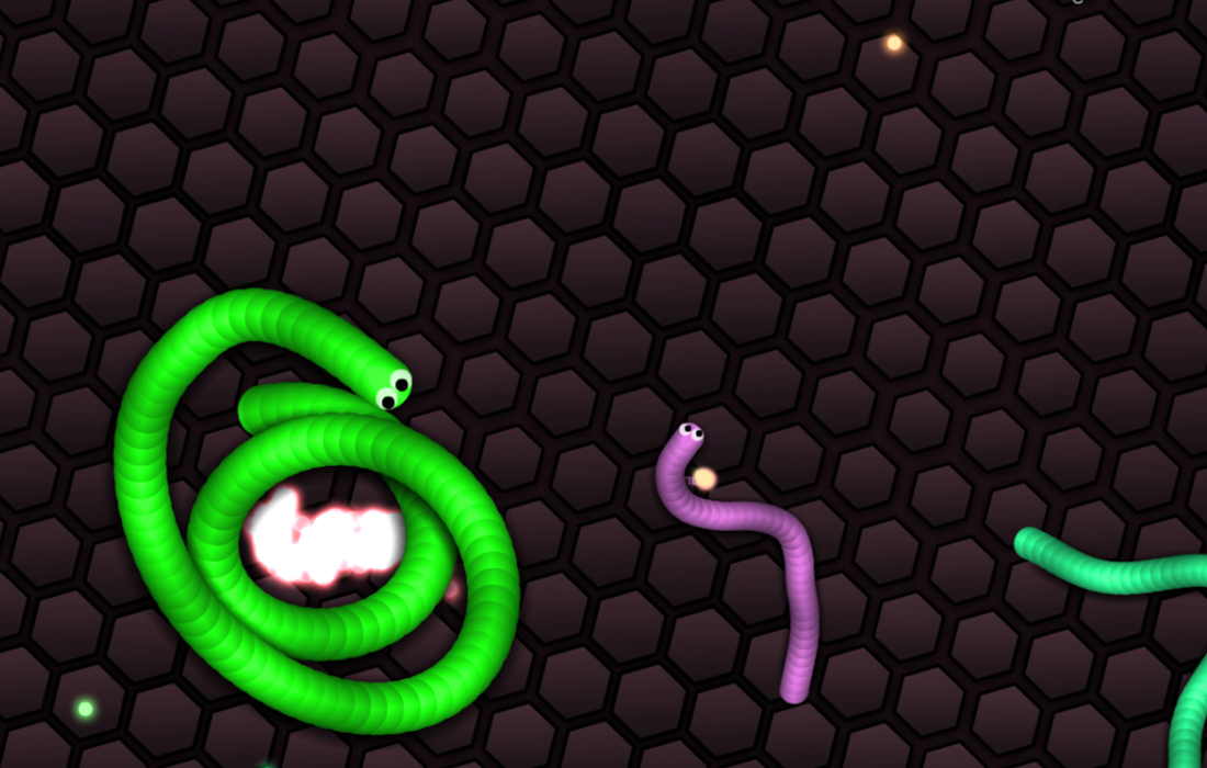Сопровождайте более жирных конкурентов – в конце концов они ошибутся, и вы полакомитесь их останками в Slither.io;