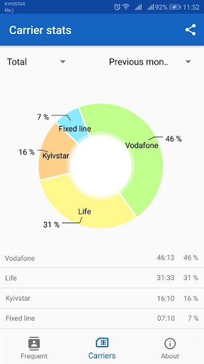 В деталях человека будет отображаться как количество минут, затрачиваемых на входящие, так и исходящие вызовы. Путем перемещения пальца вы найдете подробный счет разговоров с выбранным человеком.