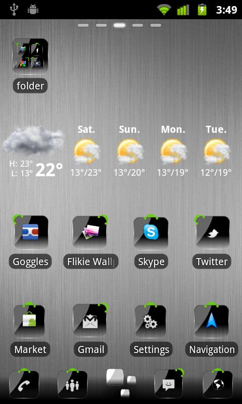 Если вам нравятся вещи Black, тема Dark Go Launcher для вас. Как следует из названия, тема имеет черноватый пользовательский интерфейс. Обои чёрные с классной текстурой, значки обёрнуты в чёрный корпус.