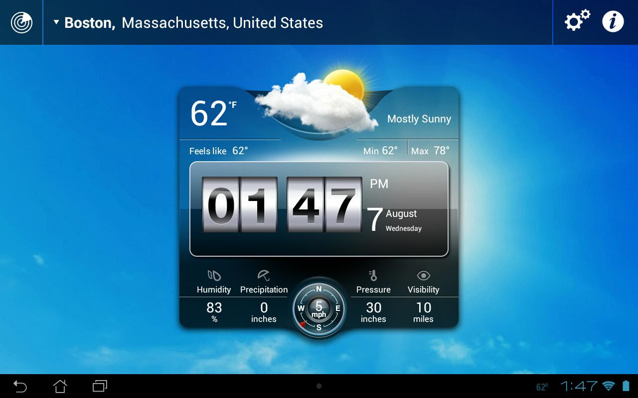 ΠΠΎΠΌΠΈΠΌΠΎ Π΄ΡΡΠ³ΠΈΡ ΠΏΡΠΈΠ»ΠΎΠΆΠ΅Π½ΠΈΠΉ-Π²ΠΈΠ΄ΠΆΠ΅ΡΠΎΠ² ΡΠ°ΡΠΎΠ², ΡΡΠΎ ΠΏΡΠΈΠ»ΠΎΠΆΠ΅Π½ΠΈΠ΅ ΠΏΡΠ΅Π΄ΠΎΡΡΠ°Π²ΠΈΡ Π²Π°ΠΌ ΠΈΠ½ΡΠΎΡΠΌΠ°ΡΠΈΡ ΠΎ ΠΏΠΎΠ³ΠΎΠ΄Π΅, Π° ΡΠ°ΠΊΠΆΠ΅ ΠΎ Π΄ΡΡΠ³ΠΈΡ Π²Π°ΠΆΠ½ΡΡ ΡΠ°ΠΊΡΠΎΡΠ°Ρ , ΡΠ°ΠΊΠΈΡ ΠΊΠ°ΠΊ ΡΠΊΠΎΡΠΎΡΡΡ Π²Π΅ΡΡΠ°, Π²Π»Π°ΠΆΠ½ΠΎΡΡΡ, Π°ΡΠΌΠΎΡΡΠ΅ΡΠ½ΠΎΠ΅ Π΄Π°Π²Π»Π΅Π½ΠΈΠ΅ ΠΈ Π½Π°ΠΏΡΠ°Π²Π»Π΅Π½ΠΈΠ΅. Π΄Π²ΠΈΠΆΡΡΠ΅Π³ΠΎΡΡ Π²ΠΎΠ·Π΄ΡΡ Π°. ΠΡΠΎ ΠΎΠ΄Π½ΠΎ ΠΈΠ· Π»ΡΡΡΠΈΡ ΠΏΡΠΈΠ»ΠΎΠΆΠ΅Π½ΠΈΠΉ; Π²Ρ Π΄ΠΎΠ»ΠΆΠ½Ρ ΠΏΠΎΠΏΡΠΎΠ±ΠΎΠ²Π°ΡΡ Ρ ΠΎΡΡ Π±Ρ ΠΎΠ΄ΠΈΠ½ ΡΠ°Π·.
