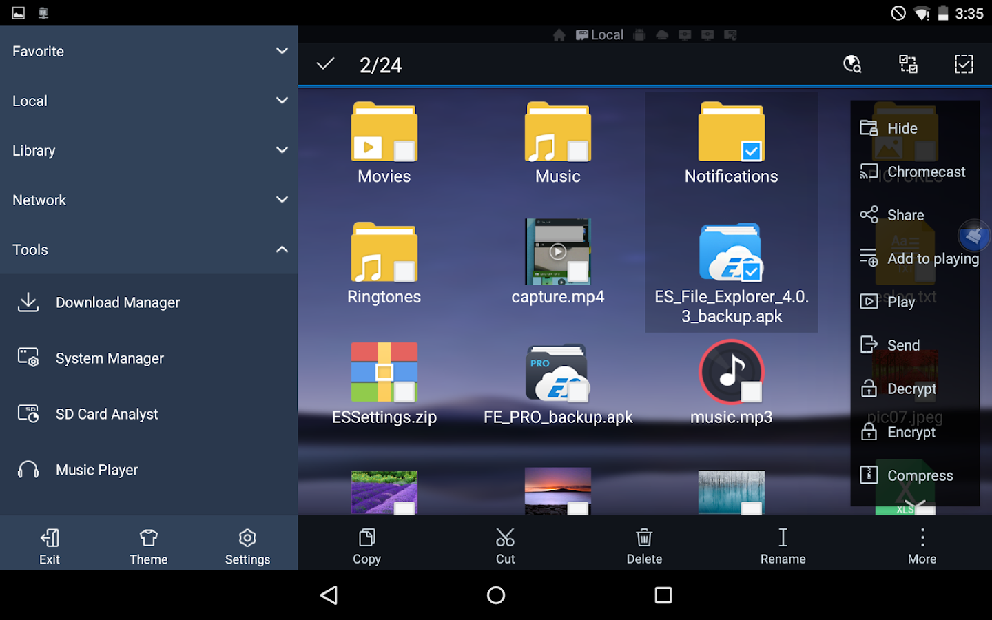 Этот файловый менеджер не занимает много места на телефоне и может управлять несколькими вещами, такими как музыка, видео, изображения и документы.