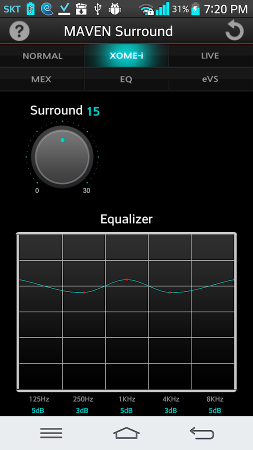 * G.EQ Control: позволяет вручную настроить многополосный эквалайзер в реальном времени в соответствии с вашим настроением.