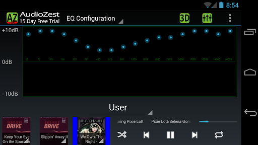3D Music Player также имеет очень эффективный встроенный эквалайзер, который позволяет пользователям выбирать настройки из нескольких музыкальных жанров, таких как классика, рок, поп, R&B, и предлагает множество других настроек.