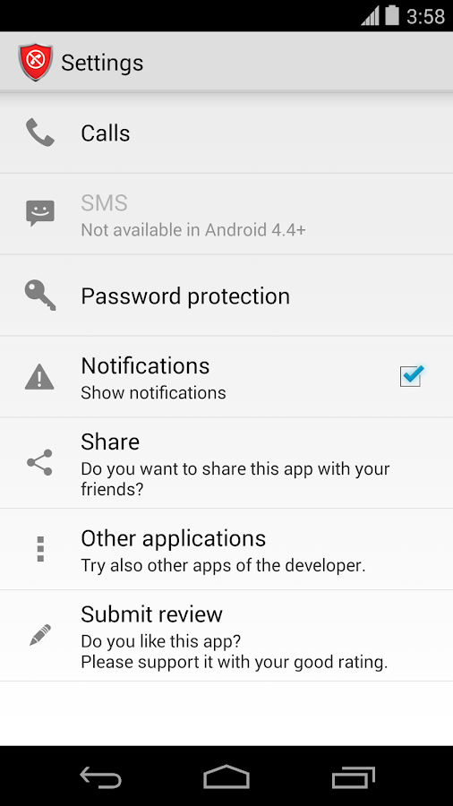 - Он также позволяет блокировать SMS, MMS или графические сообщения.
