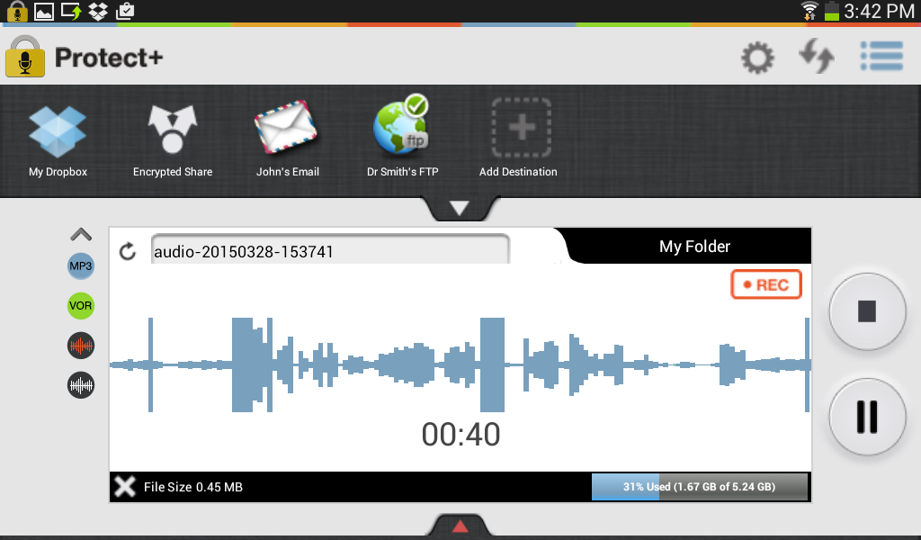 Easy Voice Recorder Pro обладает полностью функциональным интерфейсом, который будет интересен любому пользователю. Функциональный элемент, который вы испытаете впервые, — это запись важной информации для достижения множества различных целей. В то же время у него по-прежнему много приоритетов, с которыми вы можете экспериментировать на разных платформах в зависимости от ваших рабочих потребностей. Благодаря уникальной простой в использовании функции приложение может ориентироваться на разные темы и обеспечивать им первоклассную позицию. Для этих студентов, например, функция аудиозаписи будет выполняться несколько раз для записи лекций лектора. При этом одна вещь, которая им точно понравится, — это неограниченное время записи. Можно сказать, что можно сохранить все свои знания и воспроизвести звук в следующий раз.