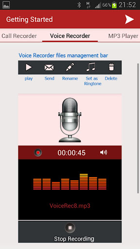 Вы также можете использовать мощные аудиофильтры на поддерживаемых устройствах, переименовывать и удалять свои записи, сохранять их в качестве мелодии звонка и многое другое.