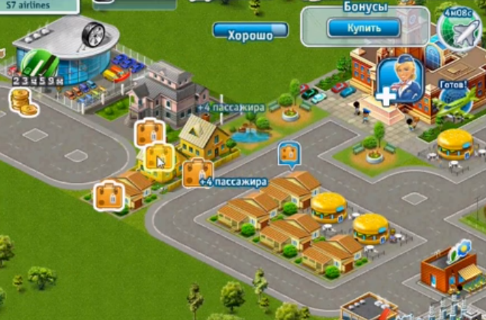 — Новая игра от Game Insight (туземцы и загадочный дом тоже их игры). Необычность игры в том, что вы развиваете сразу два направления: строите свой аэропорт и город, доставляющий пассажиров для самолетов.