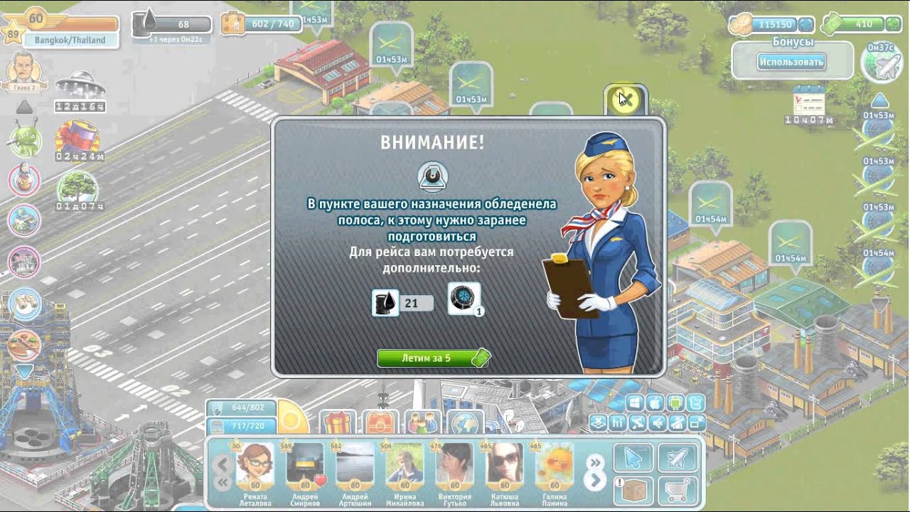 Чтобы слетать в Тайланд, нужно выполнить целую цепочку заданий: построить летную школу и достичь 11 уровней, а чтобы побывать в Риме или Лондоне, нужно еще и заработать определенное количество звезд.