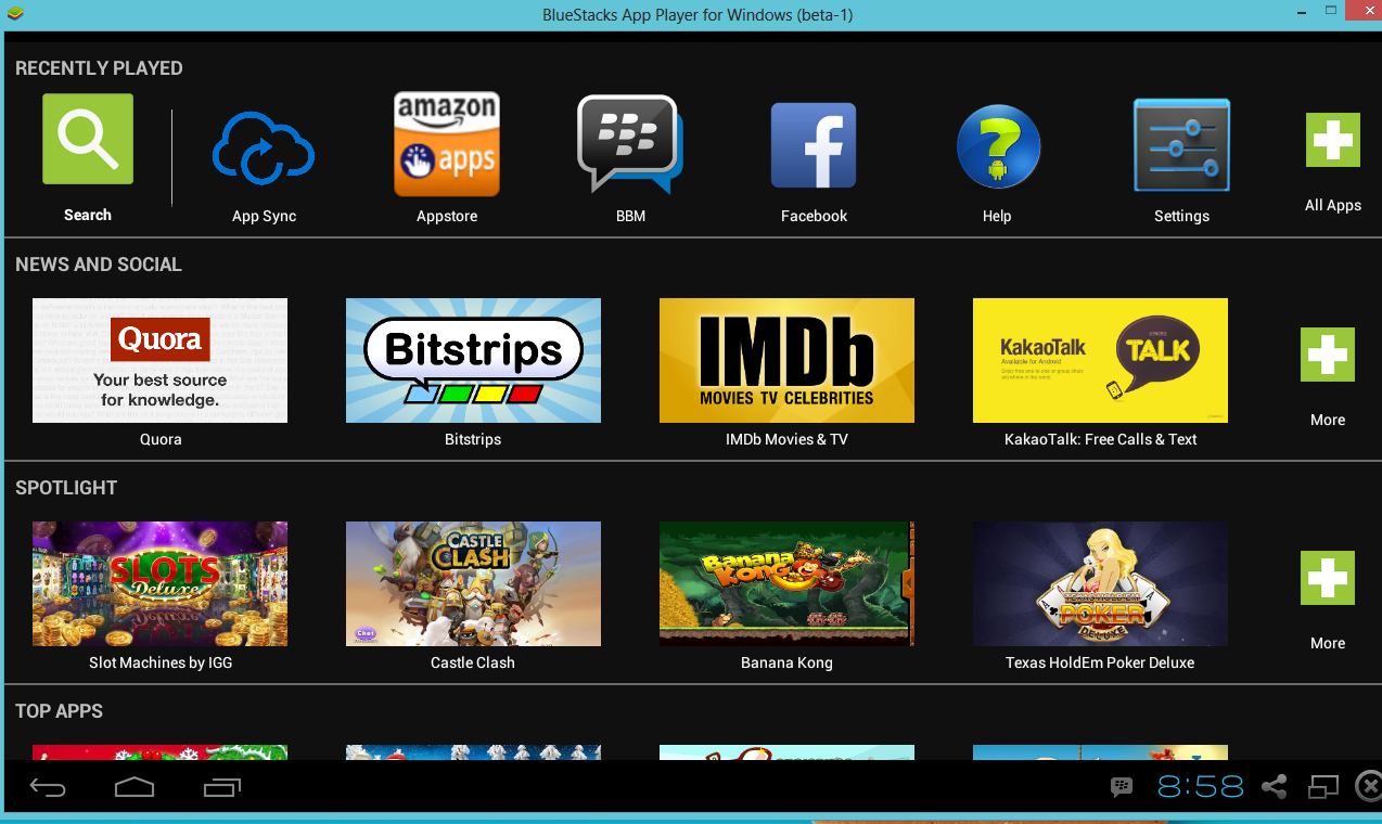 BlueStacks App Player— это специальная программа, использующая технологию под названием LayerCake, которая обеспечивает корректную среду для запуска ARM-приложений для ОС Android на компьютере с операционной системой Windows. После установки BlueStacks на ваш ПК с Windows вы можете прямо из программы загрузить необходимое Android-приложение, без необходимости использовать Android-смартфон. BlueStacks довольно аккуратно и естественно вписывается в интерфейс Windows. Программа позволяет запустить Android-приложения в оконном или полноэкранном режиме, а разобраться с ним смогут почти все — оно переведено на 12 языков, в числе которых есть и русский. BlueStacks App Player обладает поддержкой новой Windows 8 и, естественно, может быть установлена на ультрабуки и планшеты, основанные на центральных процессорах архитектуры х86.