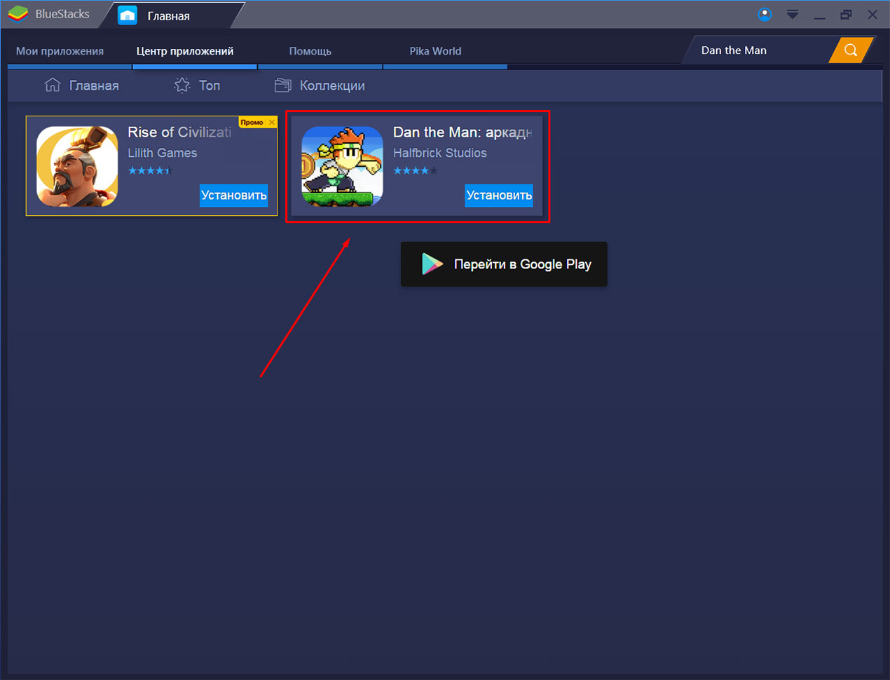 3) Нажмите на нее, чтобы открыть страницу Google Play для «Dan The Man».