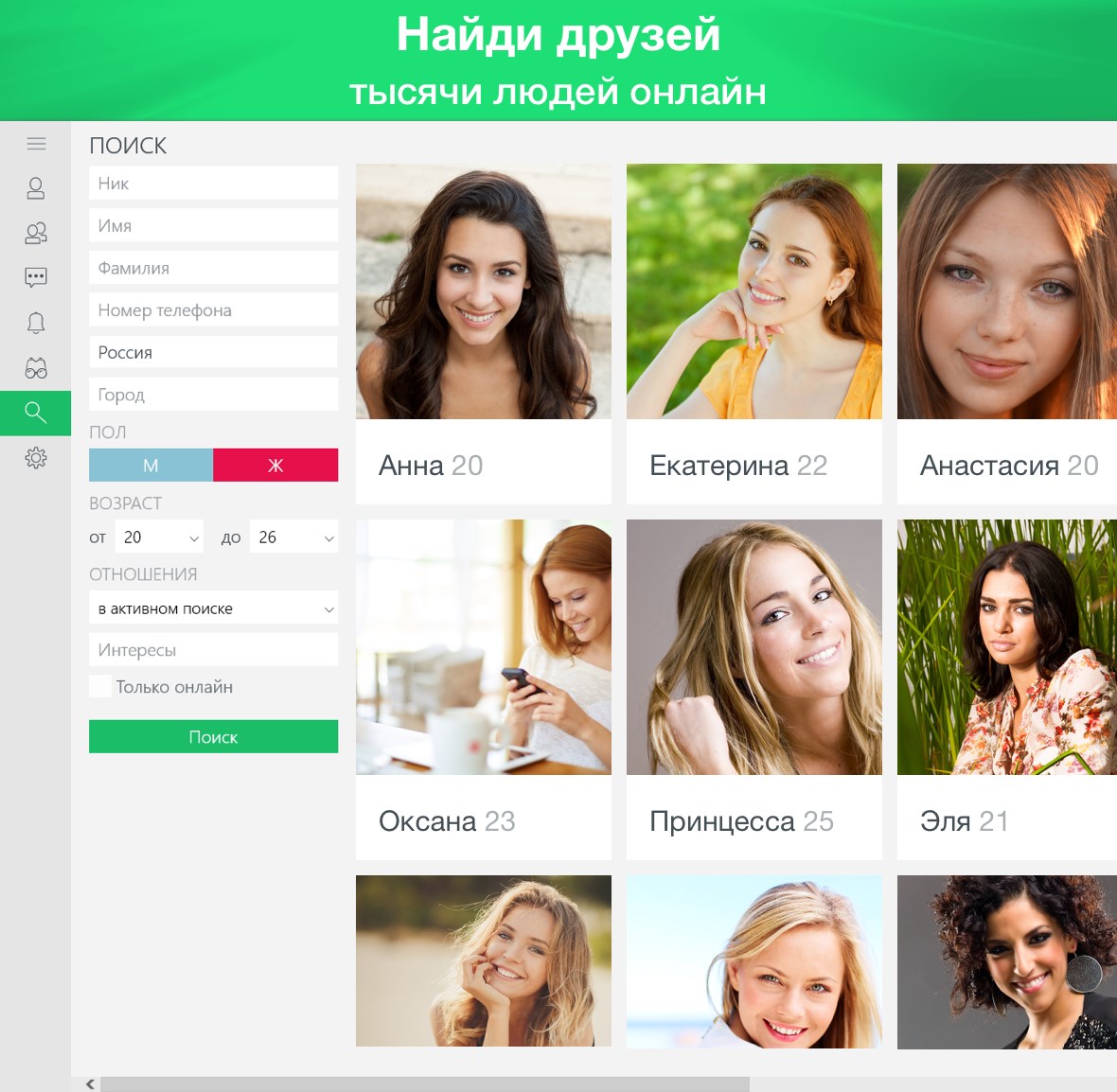 Пользователю необходимо заполнить анкетную форму, чтобы остальные участники могли сразу увидеть, кто перед ними. Все действия стандартные для большинства соцсетей – на сайте можно загрузить фото, установить статус и аватарку, оставить немного информации о себе и своих увлечениях. Далее можно начинать поиск и общаться online совершенно бесплатно.