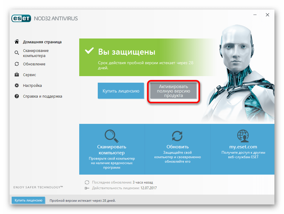 Два способа активации ESET NOD32: