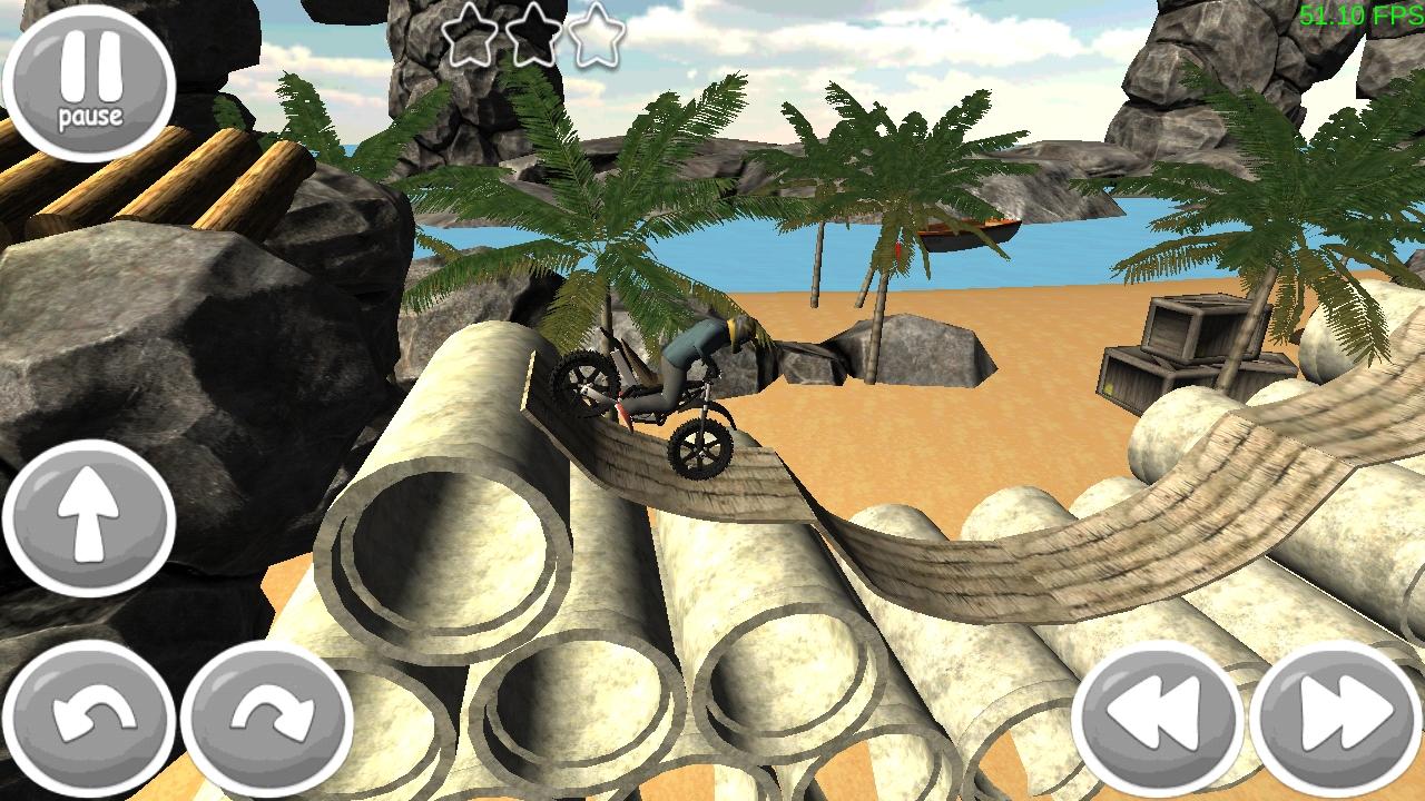 Сначала поговорим об уровнях. В Trial Xtreme 3 нам предстоит возможность пройти аж 76 совершенно разнообразных уровней как по сложности, так и по внешнему виду. Уровни разделены на 4 локации (Спорт, Пляж, Порт и Долина), т.е. по 19 уровней на каждую локацию. Сразу о схеме распространения игры. Изначально игра отдается бесплатно, но доступны всего 12 уровней (по 3 в каждой локации), затем оставшиеся 16 уровней из каждой локации требуется приобретать за 0.99$, либо же один раз купить все сразу за 2.99$. Цены вполне приемлемые.