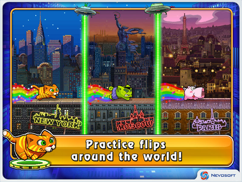 Главным персонажем этого приложения является кот Барсик, который поднял воздушную тревогу. Инопланетяне похитили у него все вкусности. Просто смотреть на это главный герой не может, поэтому он решил распроститься с родным Нью-Йорком, чтобы догнать непрошеных гостей. Отправьтесь в незабываемое путешествие, где вас ожидает множество приключений и приятных неожиданностей. Вашему главному герою придется прыгать по крышам небоскребов. Ведь только так можно догнать похитителей, чтобы вернуть все лакомства. Стоит отметить, что каждый игрок может играть вместе со своими друзьями. Для этого можно использовать различные