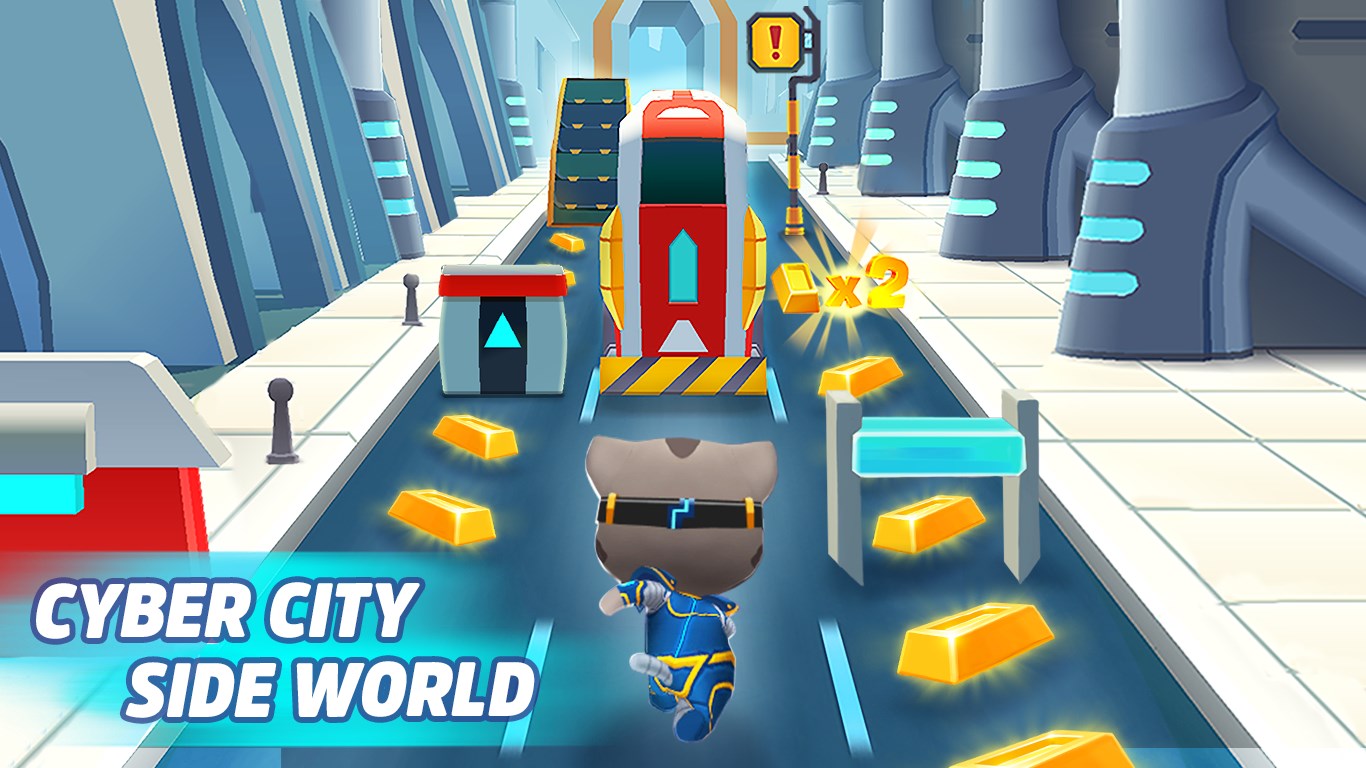 Говорящий кот не растерялся ни на секунду, а отправился в погоню по горячим следам. С этого момента управление животным принадлежит игроку. Вам придется взять на себя роль Тома и бежать не останавливаясь, ведь это раннер, как-никак. Механика игры проста. Котейка бежит по прямой линии и собирает свои кровные монетки. Правда, не может все быть слишком просто, не так ли? На пути у героя постоянно встречаются различные препятствия: то каменные стены, то вагоны, то автомобили, летящие навстречу и многое другое. Все зависит от локаций, в которых придется бежать.