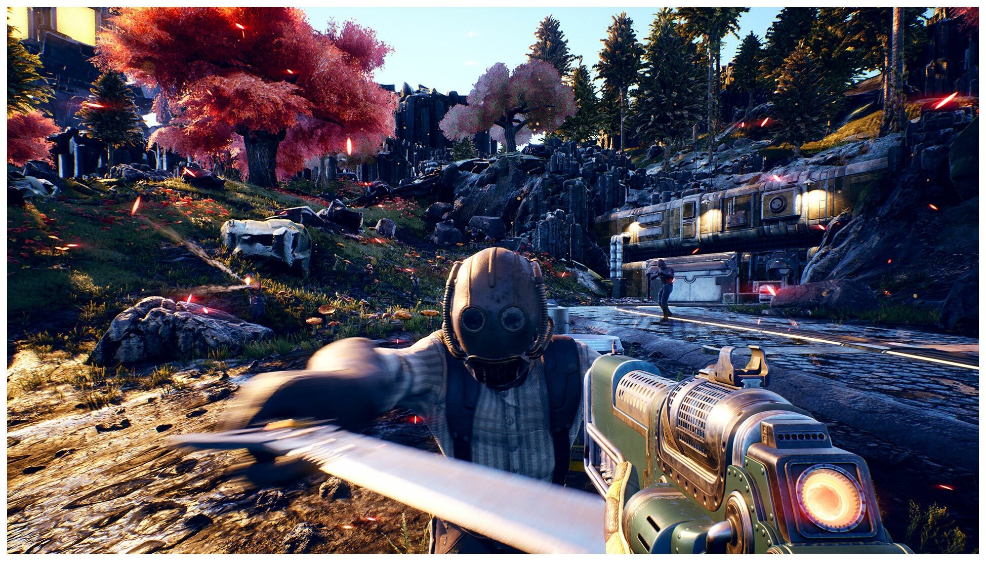 Время от времени на вас будет набрасываться стая инопланетных пауков, и вы будете вынуждены отступать назад, чтобы сохранить жизнь. Разнообразные, красочные окрестности никогда не повторяются, а когда свет приглушается и поднимается дым, это создает должную атмосферу ужаса.