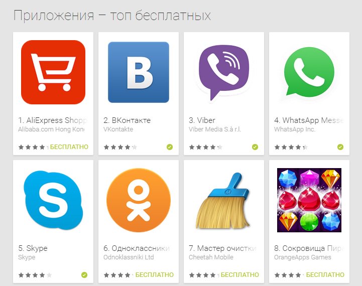 На завышающем этапе хочу предоставляю список приложений, которые разработчики интегрируют с системой андроид.