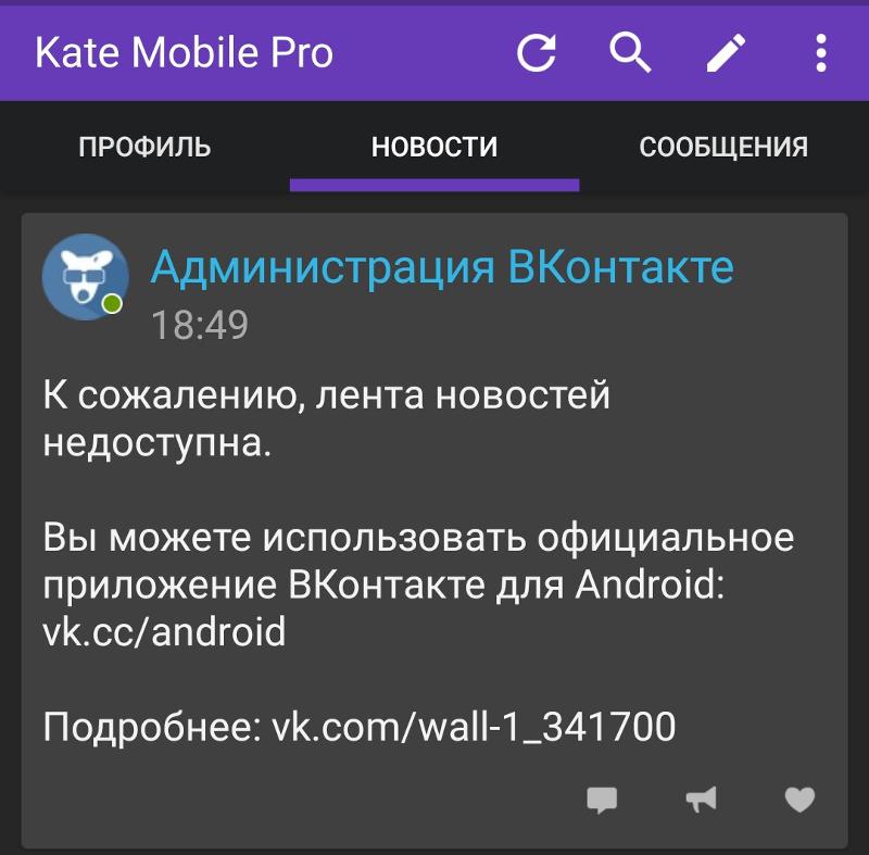 д. Kate Mobile поддерживает работу с несколькими учетными записями и быстро переключается между ними. Также Kate Mobile позволяет настроить размер шрифта и интерфейс.