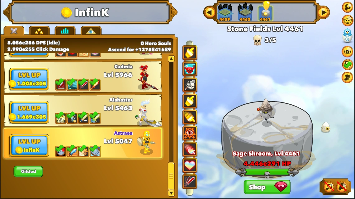 Не забывайте также повышать уровень навыков своих героев, хотя вы можете сделать это в соответствии со своим стилем игры (если вы проводите больше времени в бездействии, чем на щелчках, вы можете не захотеть покупать бонусы, которые увеличивают силу ваших кликов. , по крайней мере, сначала).