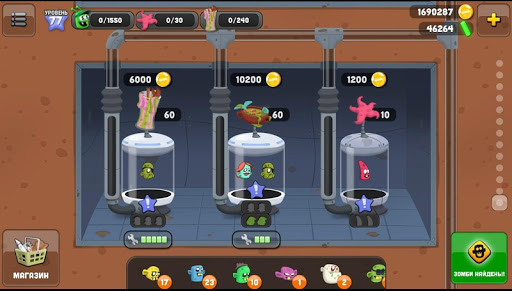 По мере прохождения игрушки, в зависимости от того, сколько зомбяков поймано, зарабатывается игровая валюта. Ее можно пускать на улучшения и апгрейд персонажей. Уровень заканчивается тогда, когда собрано необходимое количество зомби. Затем они направляются в лабораторию и перерабатываются.