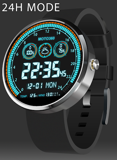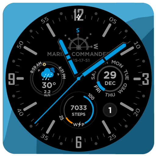 Скучаете по своим старым стрелочным часам? Тогда вам точно понравится циферблат, который имитирует внешний вид аналоговых часов, включая светящиеся ночью стрелки. Календарь, погода и, конечно же, компас прилагаются.