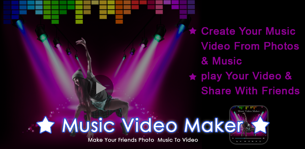 Music Video Maker — это самый простой способ создать музыкальное видео с фотографиями и песнями и поделиться удивительной историей музыкального видео с друзьями!Music Video Maker — один из лучших приложений для редактирования видео, создания слайд-шоу и фильмов в Android Store. С помощью этого приложения вы можете легко создавать и редактировать видеоисторию из фотографий галереи или фотоальбома.Мы пытаемся создать универсальный видеоредактор, такой как: текст, музыка, тема, эффекты, кадры … Все, что вам нужно для создания потрясающего видео.