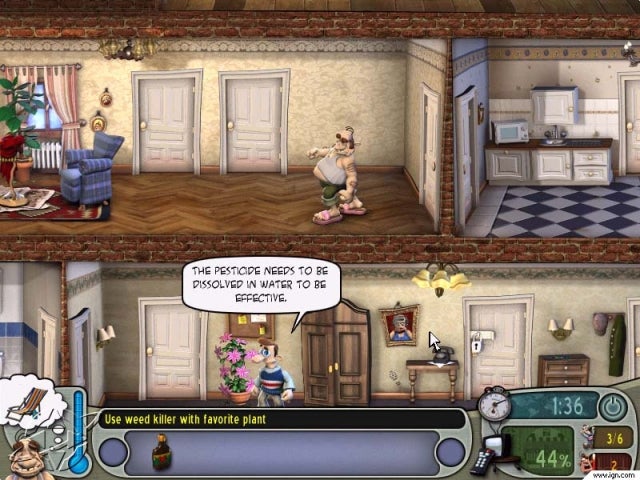 Игровая механика напоминает point and click adventure с элементами стелса и головоломок. На каждом из этапов, а их целых 14, наша цель собрать нужные предметы и ловко комбинировать их для создания ловушек. Наши розыгрыши могут выполняться в специальных последовательностях, которые вызывают у противника все большую ярость. Чтобы нас не обнаружили, нам придется не попадаться врагу на глаза и использовать систему простых укрытий.