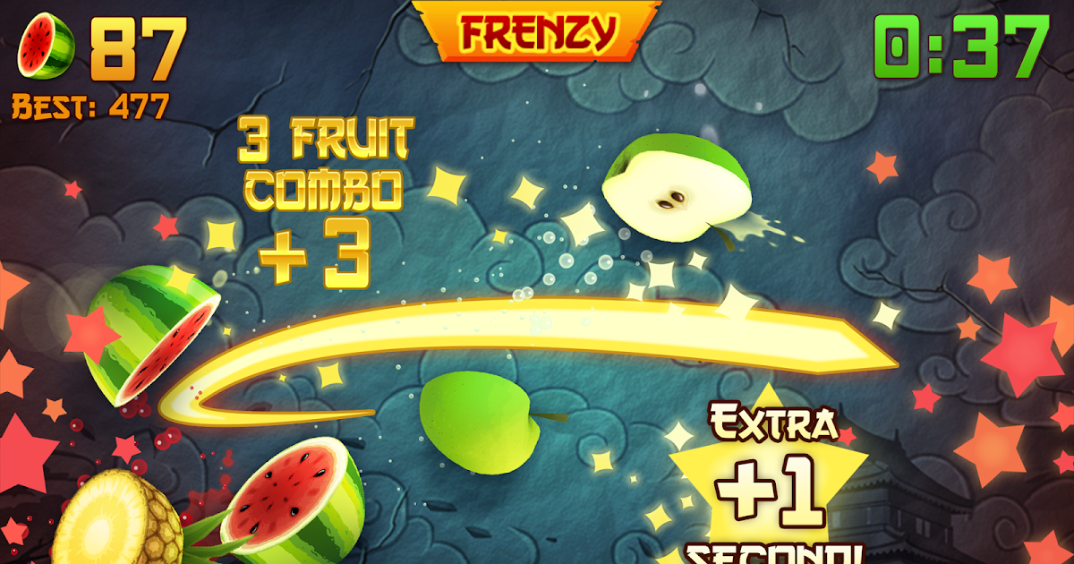 Есть также исключительный звездный фрукт, который дает двойные очки при нарезке, поэтому старайтесь избегать его слишком часто; в противном случае ваш счет будет сумасшедшим! Вы также должны быть осторожны при нарезке фруктов, потому что, если вы разрежете бомбу, вы проиграете.