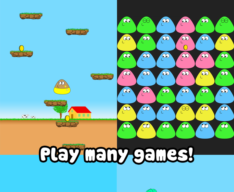 Кормите Pou каждый день, держите их в чистоте, играйте с ними и наблюдайте, как они растут прямо на ваших глазах, пока вы играете в разные игры и зарабатываете достижения. По мере роста вашего питомца вы будете получать доступ к новым обоям, нарядам, параметрам настройки и играм, что позволит вам погрузиться в мир приключений на долгие часы!