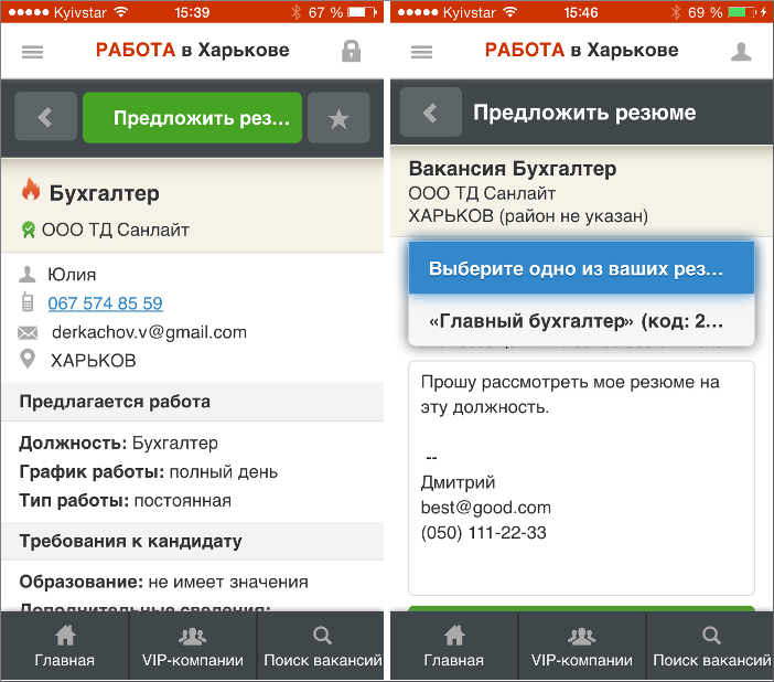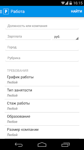 Поиск с использованием фильтров задает индивидуальные критерии места расположения трудовой деятельности, графику, заработной плате, дате публикации. Личный профиль оформляется необходимыми для трудоустройства данными, резюме имеет единую форму у всех кандидатов. Сервис анализирует личные пожелания соискателя находя оптимальные варианты для рассмотрения. Связь работодателя и соискателя осуществляется в чате, звонками или откликом на вакансию. Рейтинг 4,6. Более 500 000 загрузок.