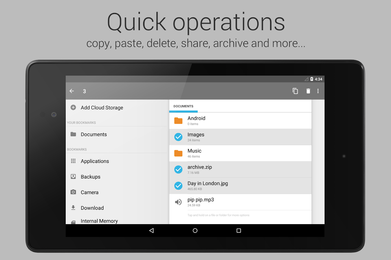Управление и просмотр файлов на Android по умолчанию неудобен. Решает эту проблему данный сторонний файловый менеджер. Делает он все что нужно для данного типа программ. Можно смотреть файлы, копировать, перемещать, удалять. Также удобный доступ к FTP и локальной сети.