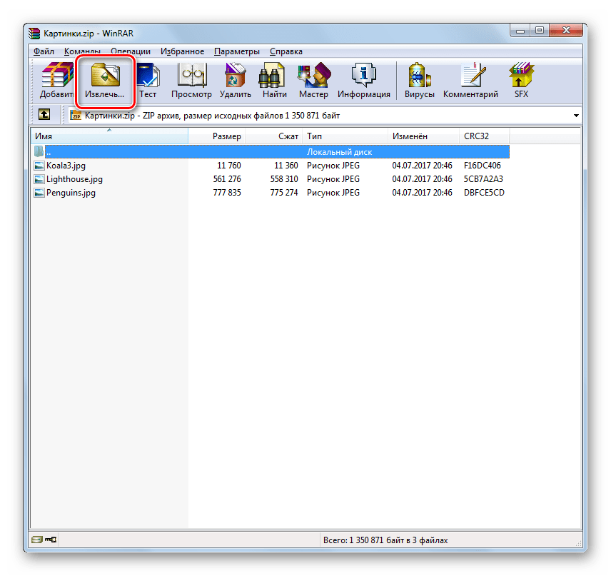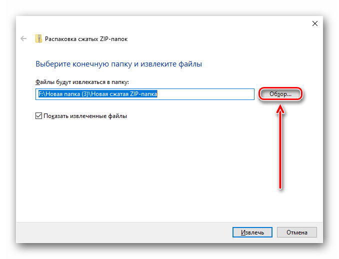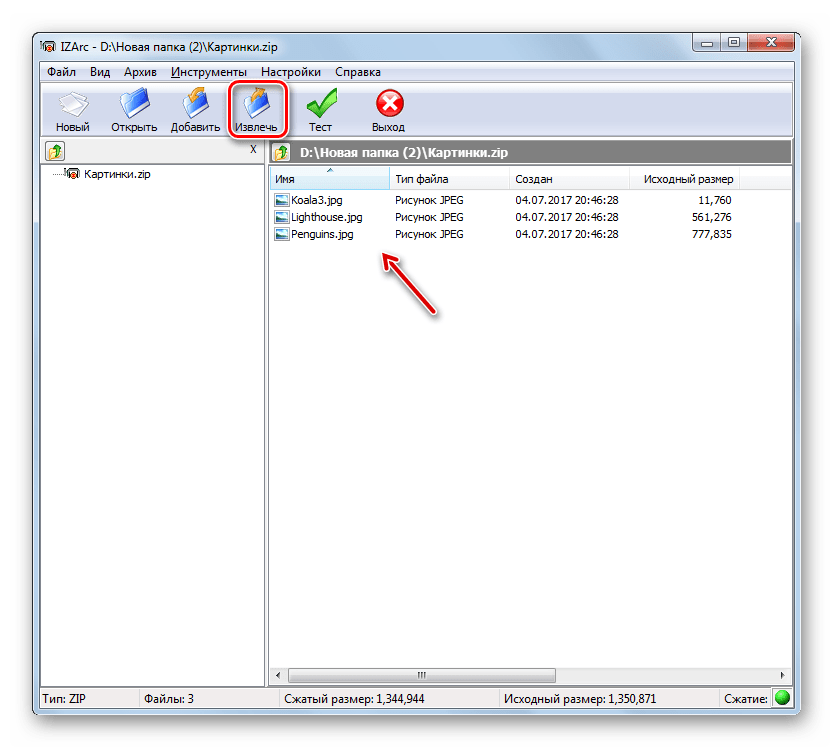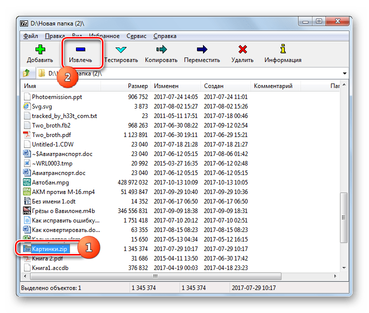 Способ № 1. Распаковка ZIP файла при помощи встроенного архиватора.