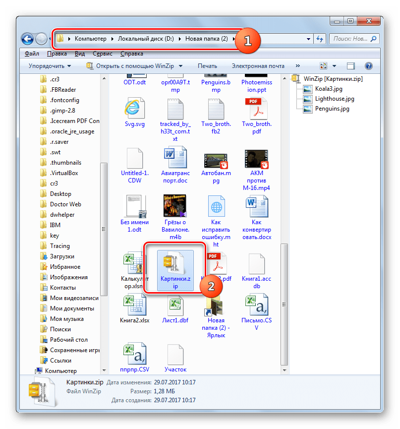 После этого ZIP файл откроется как обычная папка. Если вы обратите внимание на адресную строку, то там будет указано, что вы просматриваете содержимое вашего ZIP файла.
